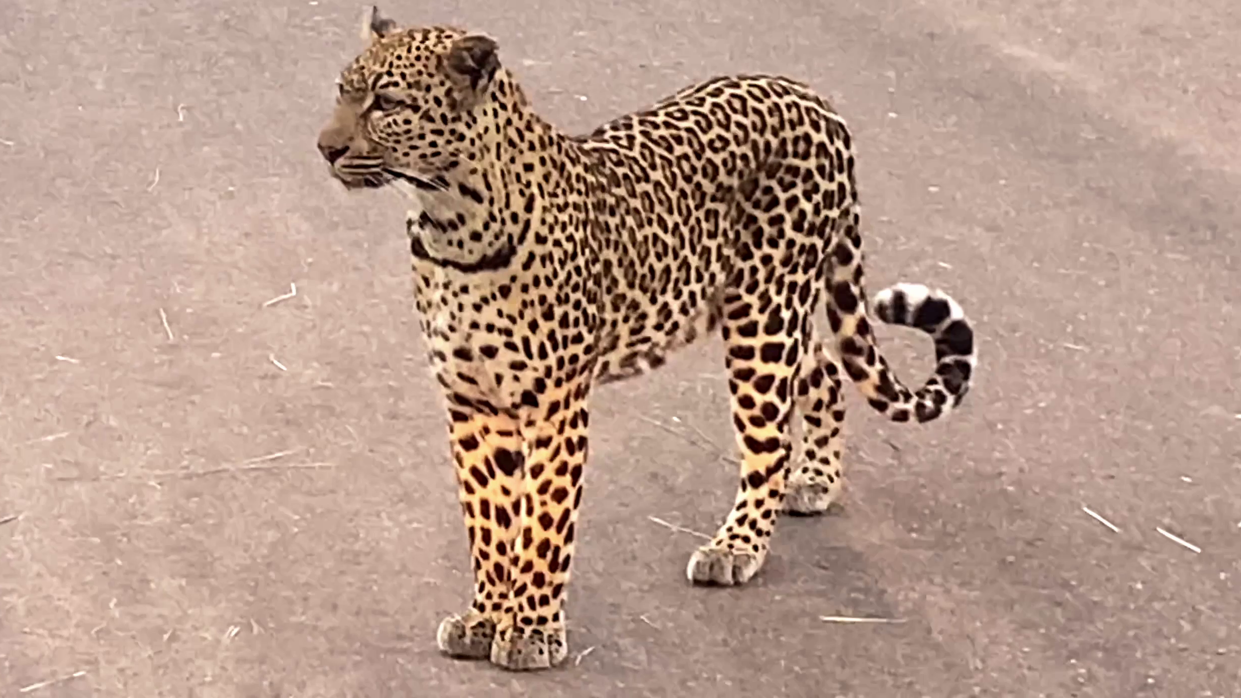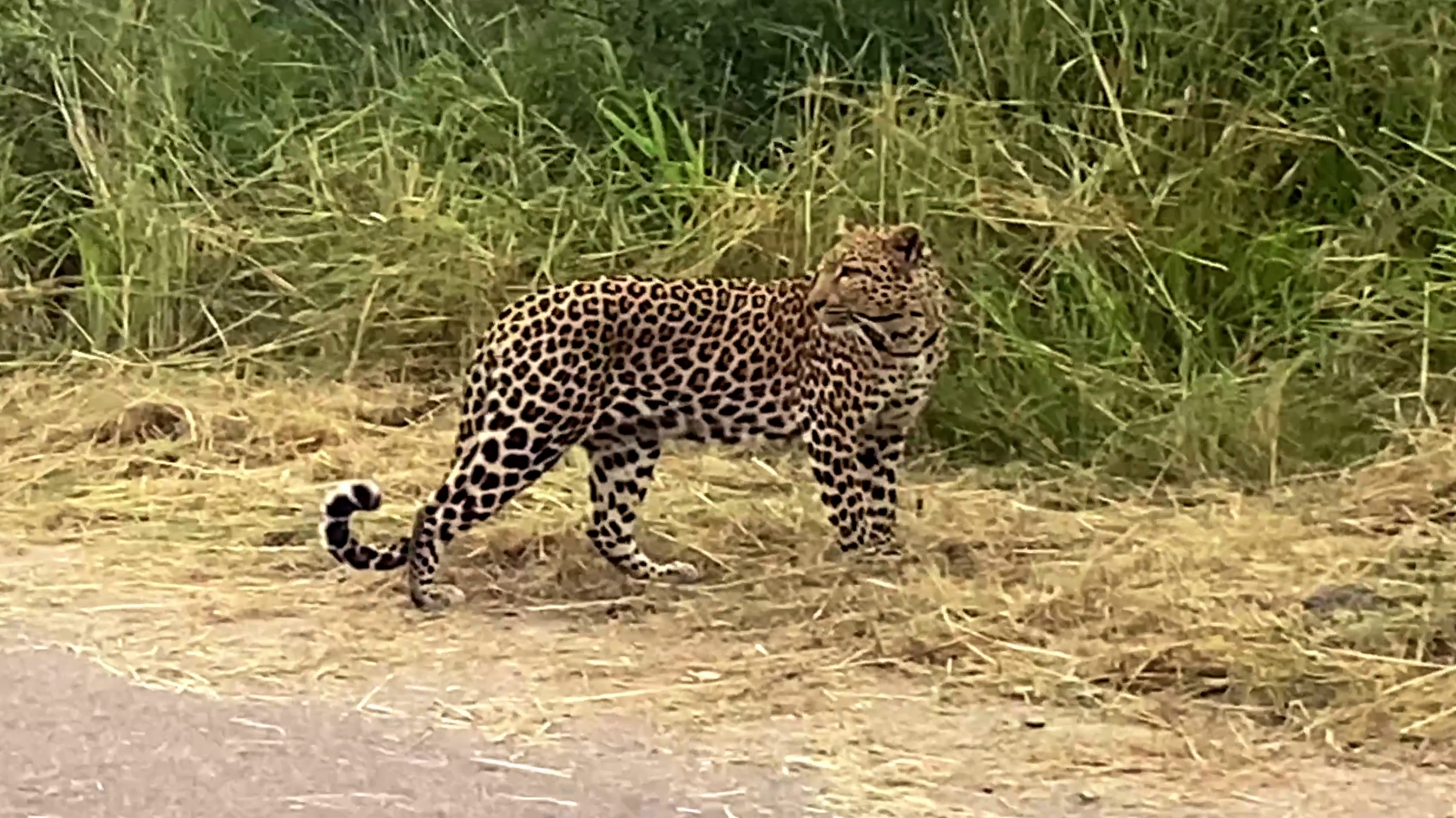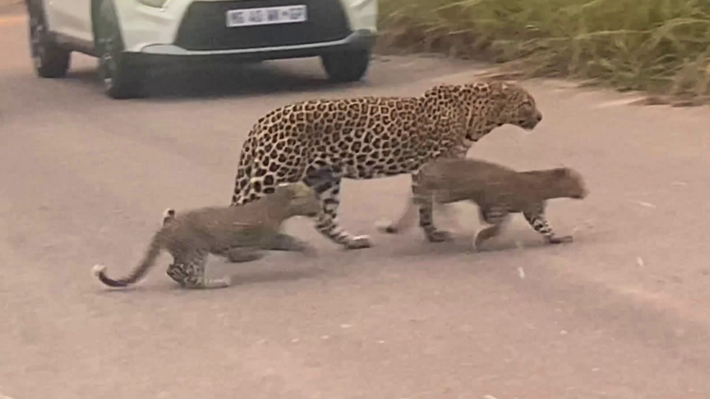 As the video comes to an end, the trio is last seen slinking into the long grass. The mother leopard has successfully navigated the traffic and will surely go on to be as caring and vigilant as she was throughout this episode.