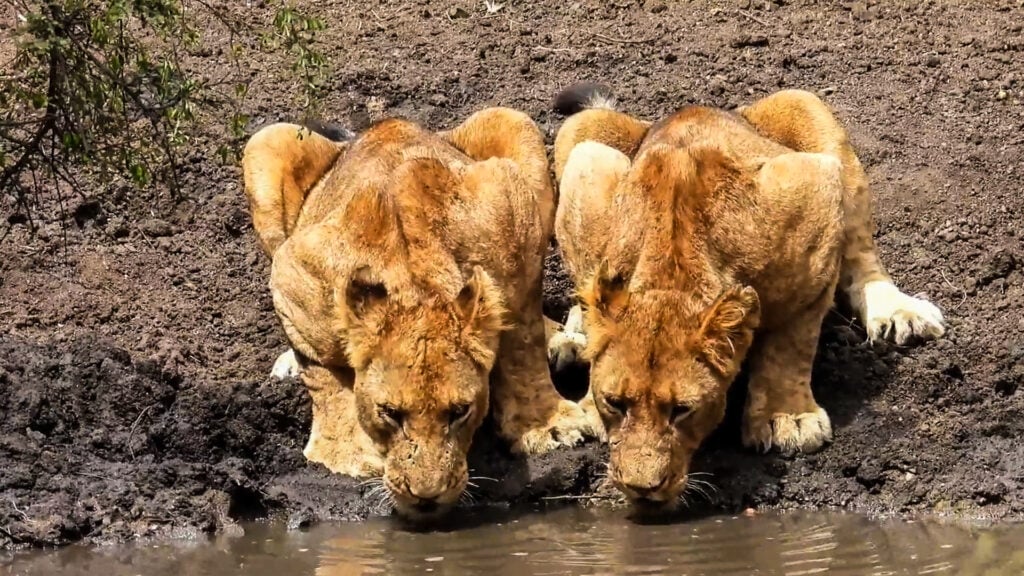 These two had to wait until some of the other lions had had their fill and backed away from the water so that they could take that spot for themselves.