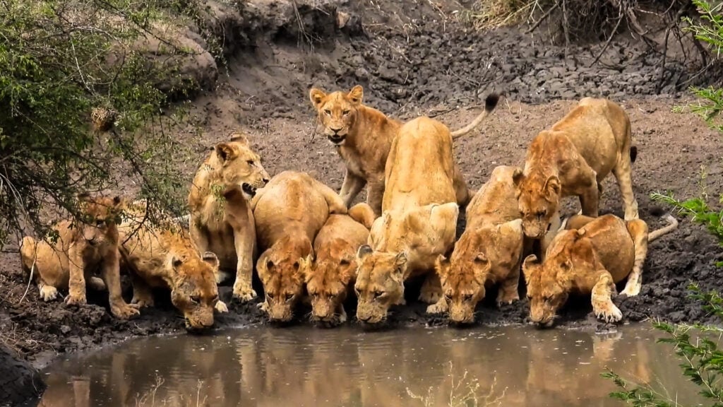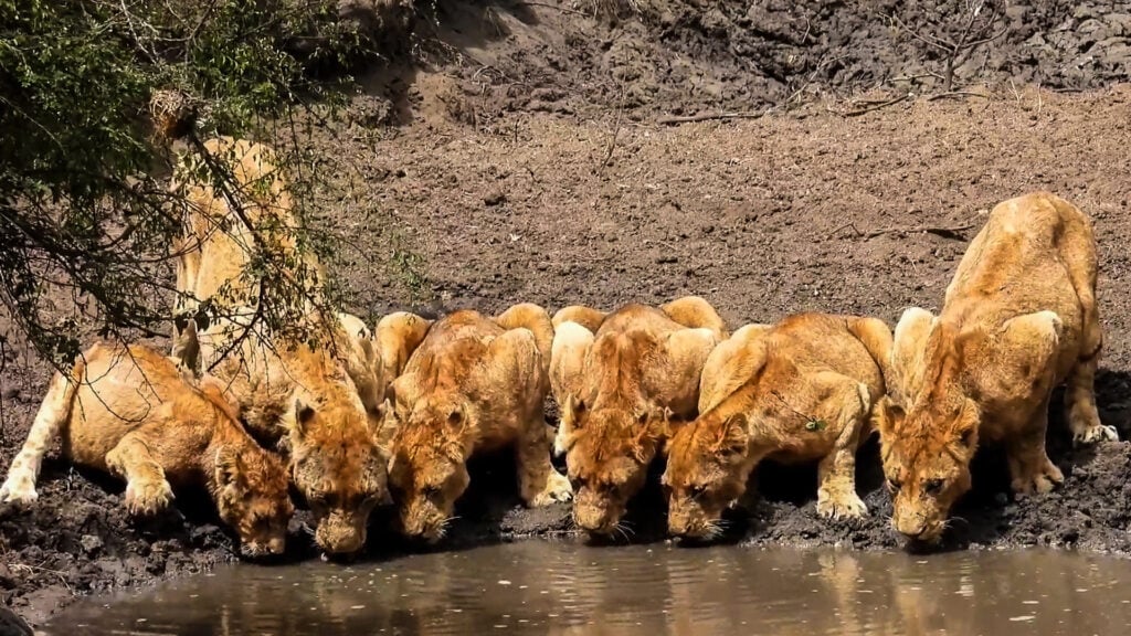 But then a third came, and a fourth, and then, so suddenly that if you blink you’d miss it, seemingly the whole pride had assembled right on the edge of the water, all determined to fit in the smallest space possible.
