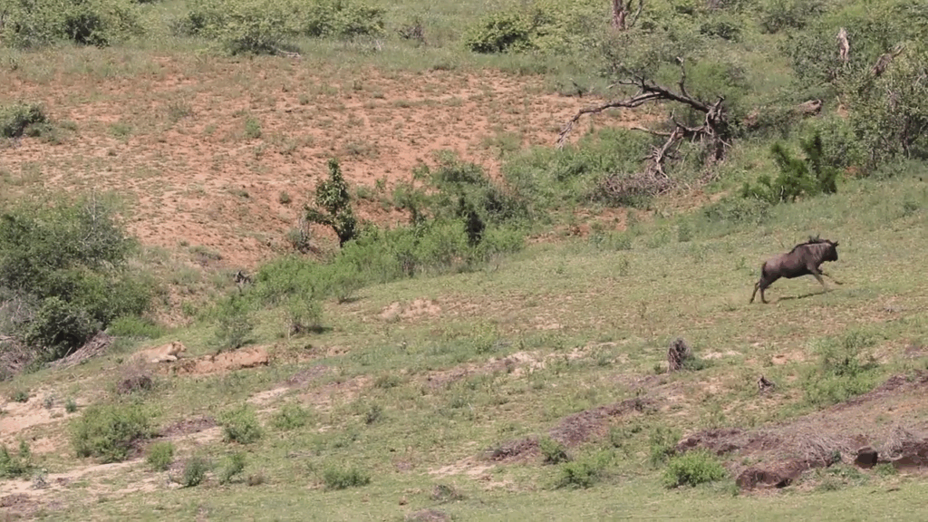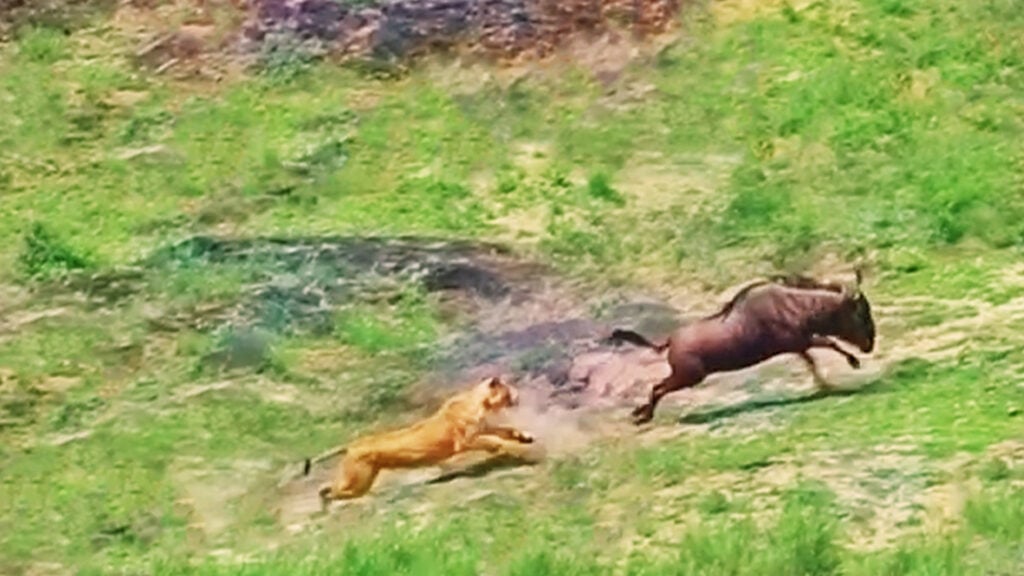 Wildebeest successfully outruns lioness