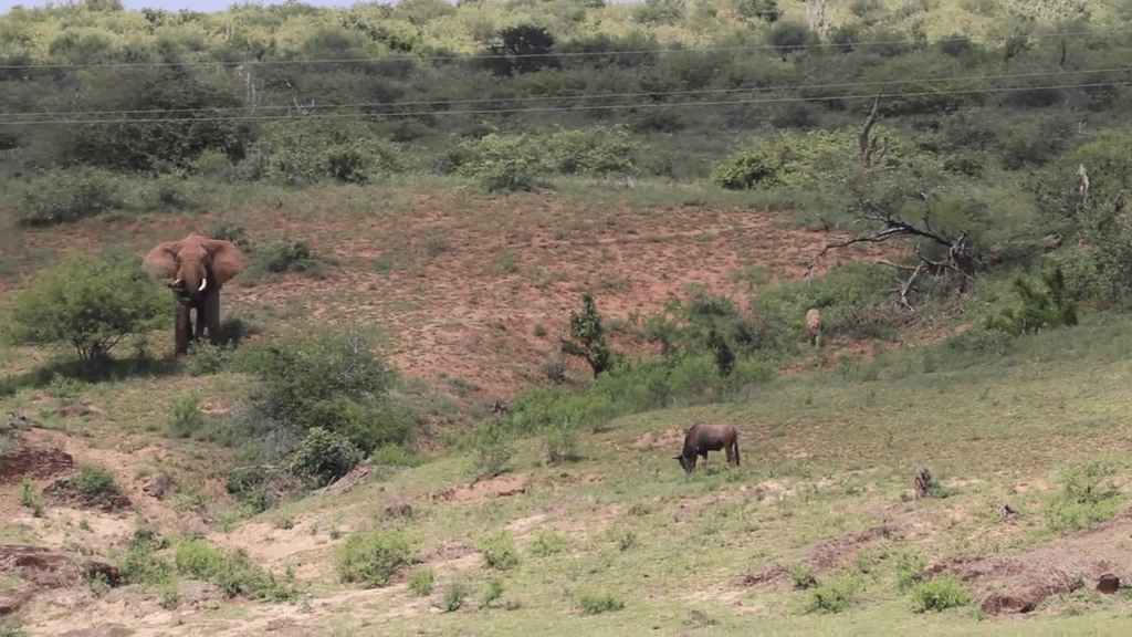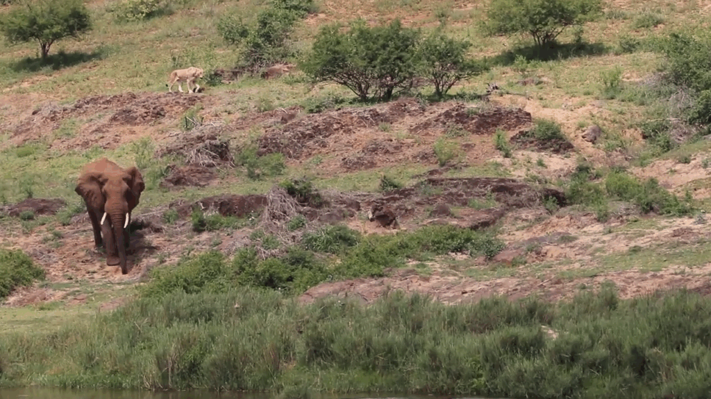 She slowed her pace and made her way to the river area. There, an elephant was slowly making its way down for a drink.