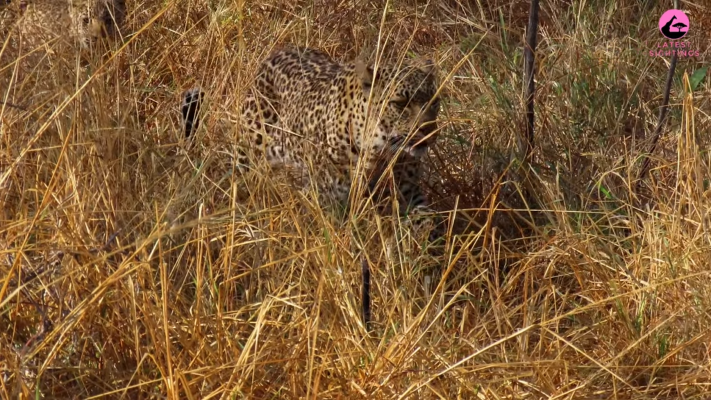 Initially it appeared there was just one leopard. The female leopard walked carefully through the long grass and she alone was enough to warrant a measure of awe.