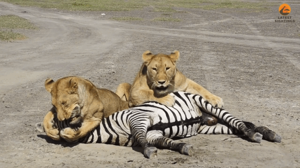 She was soon joined by a second lioness. With the zebra still alive, the lionesses used their teeth and claws to control and subdue the animal. The lionesses targeted vulnerable areas, including the throat and the muzzle. One of them used her powerful jaws to suffocate the zebra.