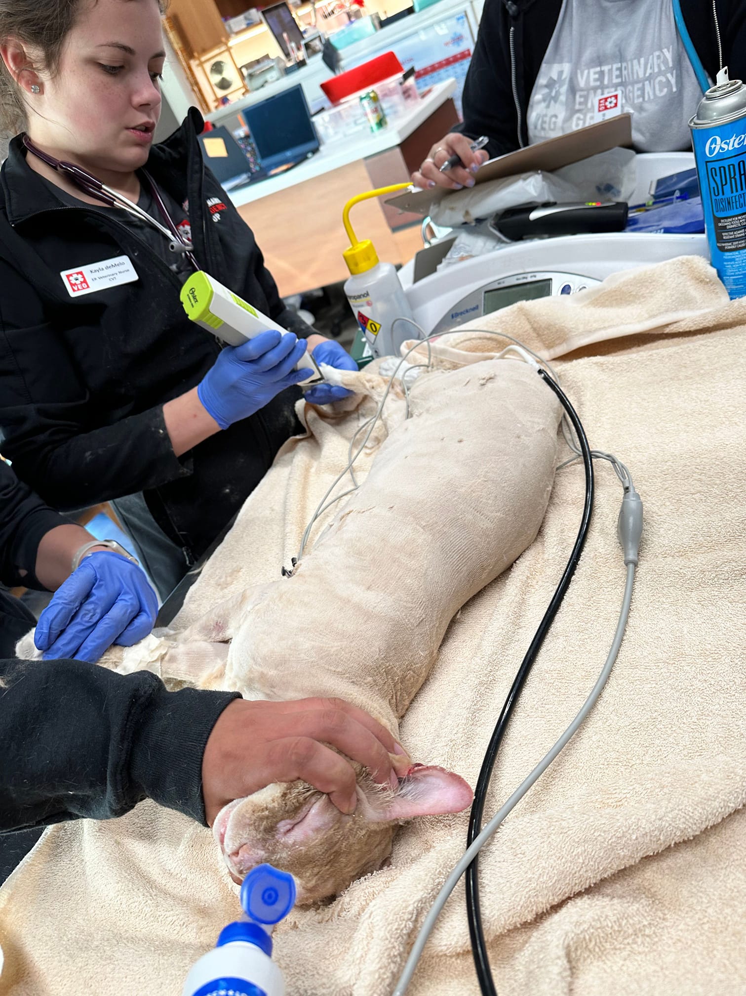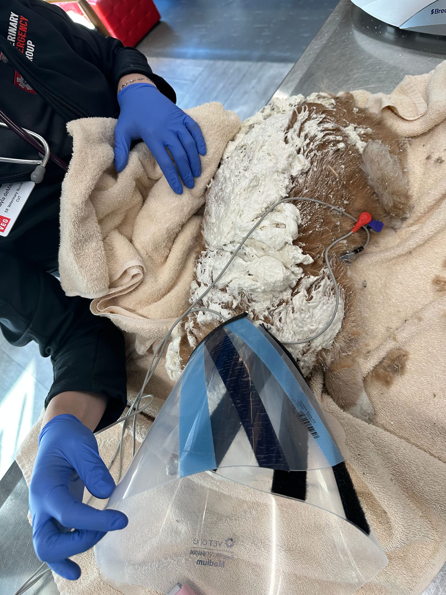 Lea immediately contacted the Veterinary Emergency Group (VEG) in Newton, Massachusetts, and the ER team sprang into action. Dr. Thamires Nunes, who was one of the first responders, initially thought the situation wasn’t too severe.
