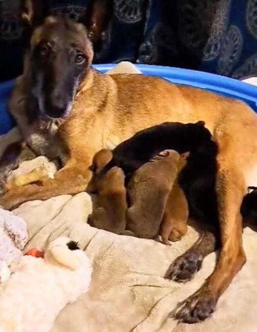 Upon arrival, the rescue team discovered Molly was pregnant. Not long after, she gave birth to nine beautiful puppies.