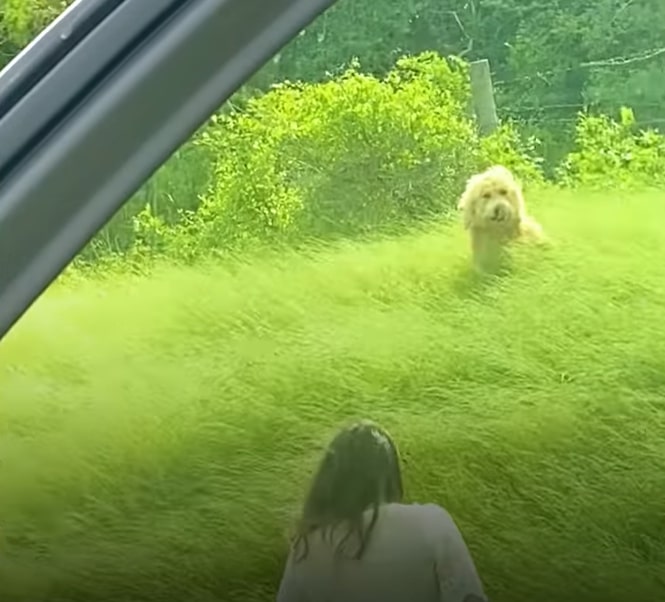 The moment they saw him, Laura and Carla pulled over and stepped out of the car. Unsure how he might respond, they approached cautiously. But the golden dog showed no fear, only calm acceptance.