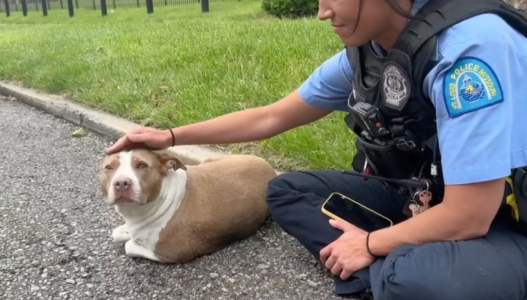 For Joy Bird, the sight of the officers meant relief. The team quickly created a barrier around her to shield her from passing cars and contacted Stray Rescue of St. Louis for assistance.