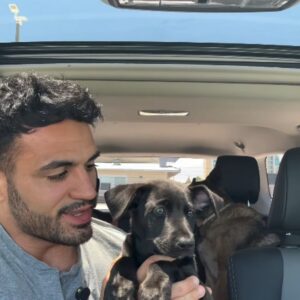 The pup, who they soon named Orville, soaked up every bit of affection. When the doors of the SRSL Jeep opened, he climbed right in and settled himself comfortably in the front seat.