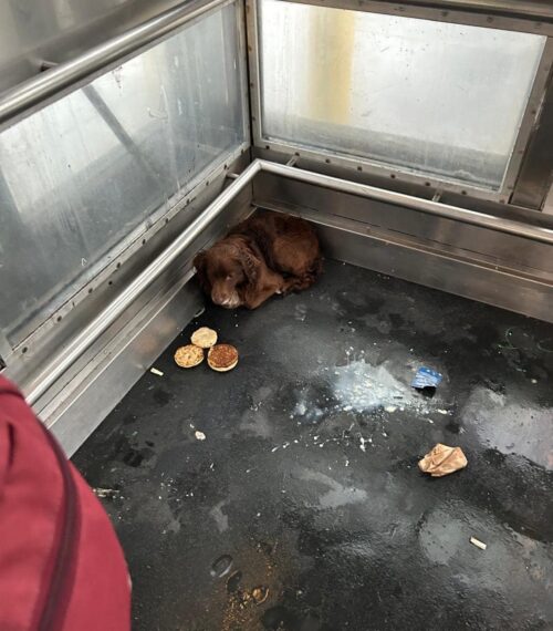 The floor of the house was unstable, so they tried a new approach. They placed food nearby, hoping the puppies’ hunger would bring them out of hiding.