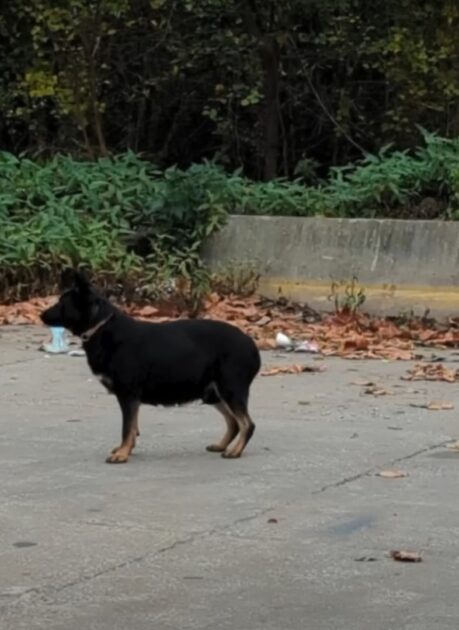 “Hi Stray Rescue. I just saw this dog get dumped. I’m pretty sure she’s pregnant. Can you help her?”