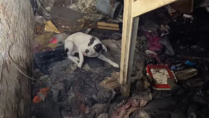 The rescuer realized the problem immediately. The stairs that once led to the basement had collapsed, leaving the dog trapped with no possible way to climb out.