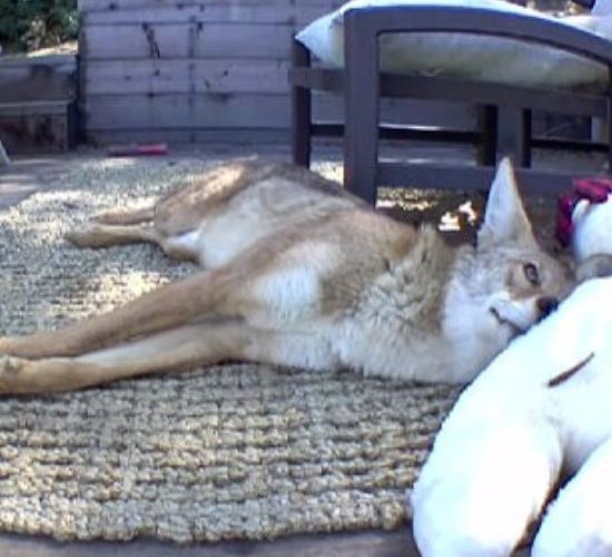 Recognizing that the coyote seemed exhausted, LouAnne decided to let her rest peacefully in the yard. She even gave the wild animal a name: Stevie.