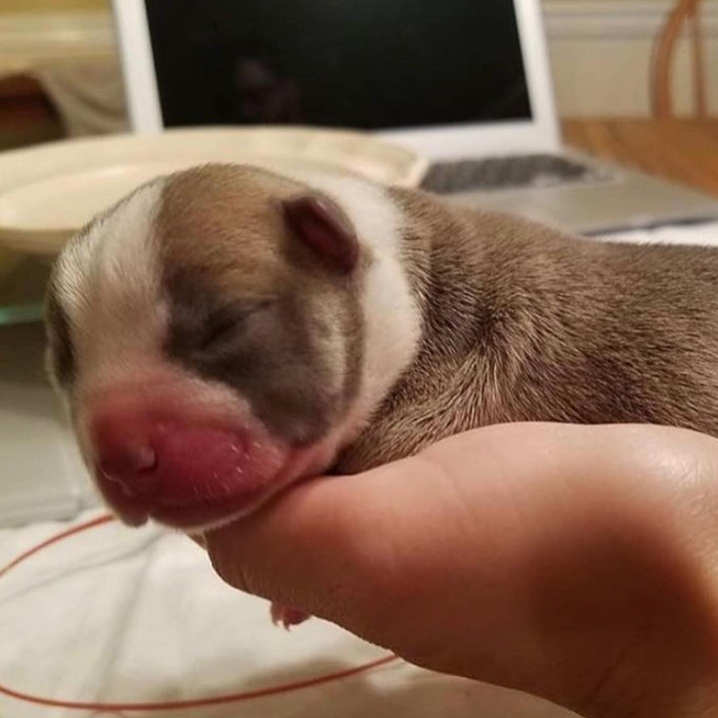 Craig and Virginie Fields, founders of New York Bully Crew, received an urgent call from a veterinarian about a newborn puppy named Daliso. He was only one day old and had been scheduled for euthanasia. Born with a cleft palate that prevented him from nursing, his original owner had chosen to end his life.