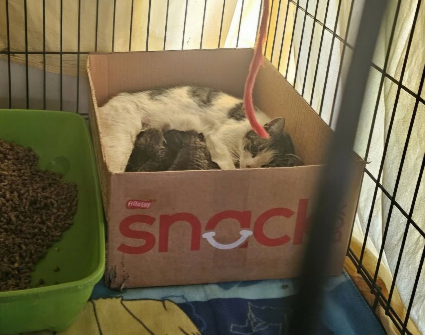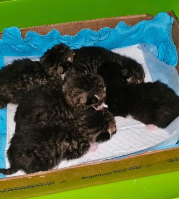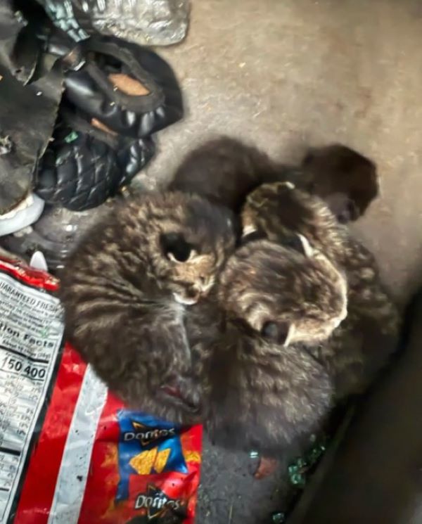 Nestled together for warmth were five tiny kittens, estimated to be around two weeks old. They appeared weak and confused, waiting for a mother who was nowhere to be found.