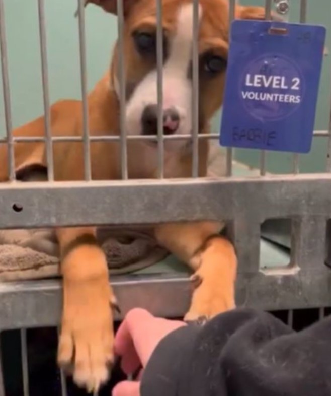 The clever pup would extend her small paws through the bars of the kennel, inviting visitors to pause and engage in play. This behavior quickly became her signature move and a hallmark of her personality.