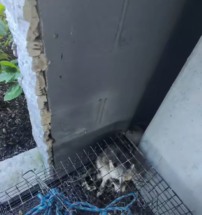 A raccoon was inside the trap. He looked very scared, so the man called a local animal rescuer, John Debacker, to assist in this rescue.