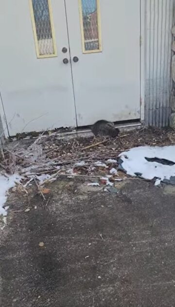 To avoid scaring the already stressed animal, Debacker moved slowly and carefully opened the door just enough for the raccoon to wriggle free.