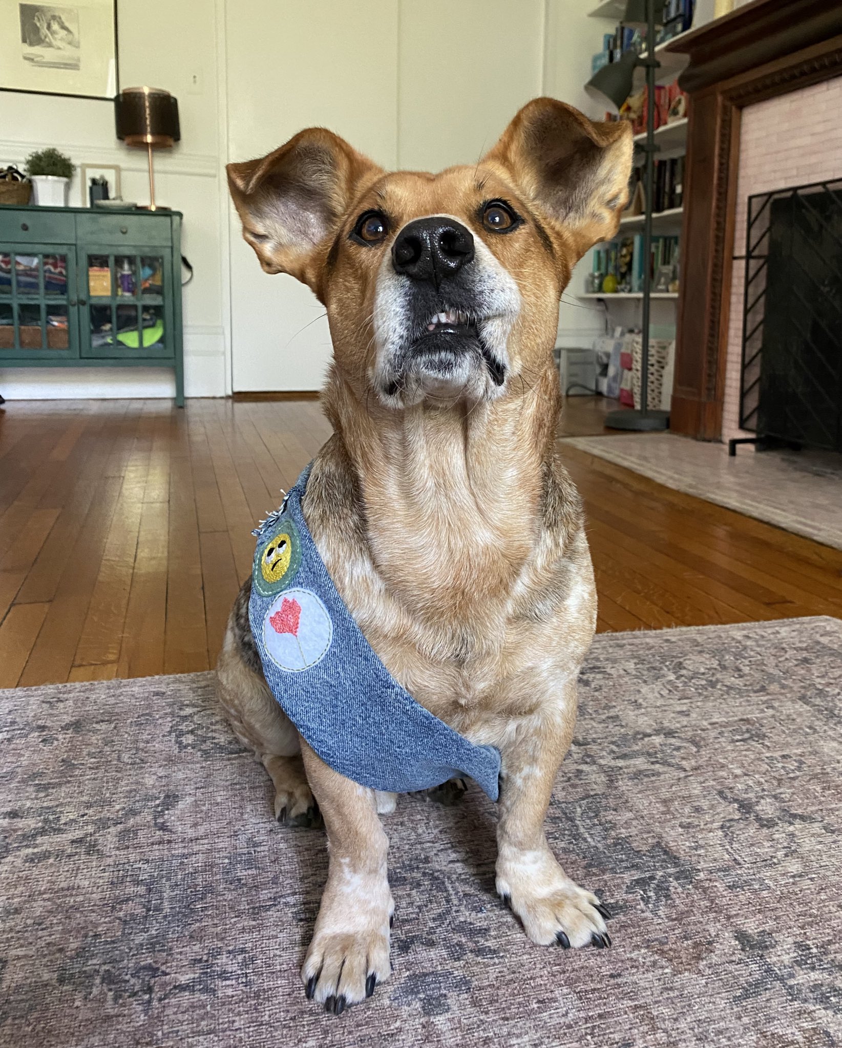 Now, Simon has collected a total of 17 badges. His sash includes awards for ‘Emotional Support,’ ‘Hosting Houseguests,’ ‘Attending Passover Seder,’ ‘Migraine Support,’ ‘MTA Ridership,’ ‘Thunderstorm Bravery,’ ‘Respecting The Ocean,’ ‘Extraordinary Ear Design,’ ‘Pup Cup Connoisseurship,’ ‘NYC Good Citizenship,’ ‘Self-love,’ ‘Park Patronage,’ ‘Advocacy [And] Fundraising,’ ‘I Did My Best’ (for fostering), ‘Excellence In Winter Fashion,’ ‘Patience,’ and ‘Horticultural Appreciation.’