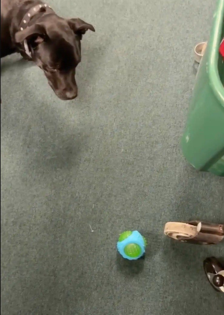 As a dog owner herself, Juliet immediately understood the invitation. She gently kicked the ball, and Brutus eagerly chased after it.