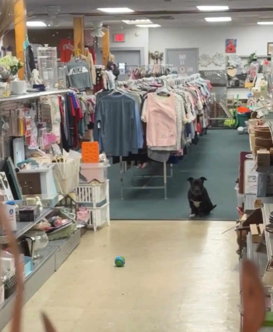 While she browsed the aisles for hidden treasures, she realized she had gained a furry companion. Brutus had clearly mastered the art of winning hearts, one game of fetch at a time.
