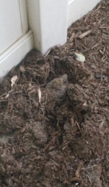 A snapping turtle was hidden beneath the mulch. At first, he looked lifeless. But then, he blinked and revealed the truth. He was alive, though confused and out of place.