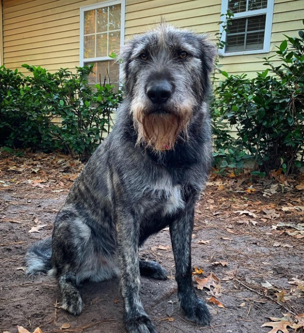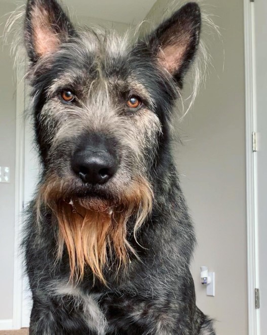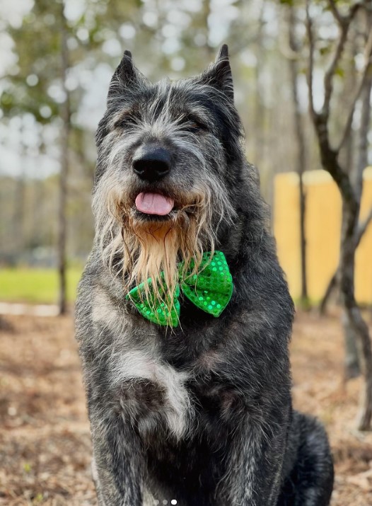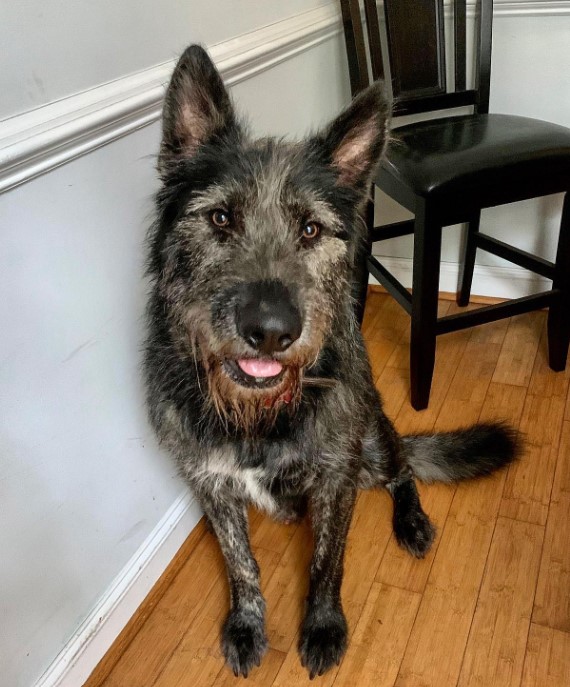 His size, coloring, and whimsical beard often spark curiosity. Even so, he is nothing more than a warm and friendly dog who loves making people happy.