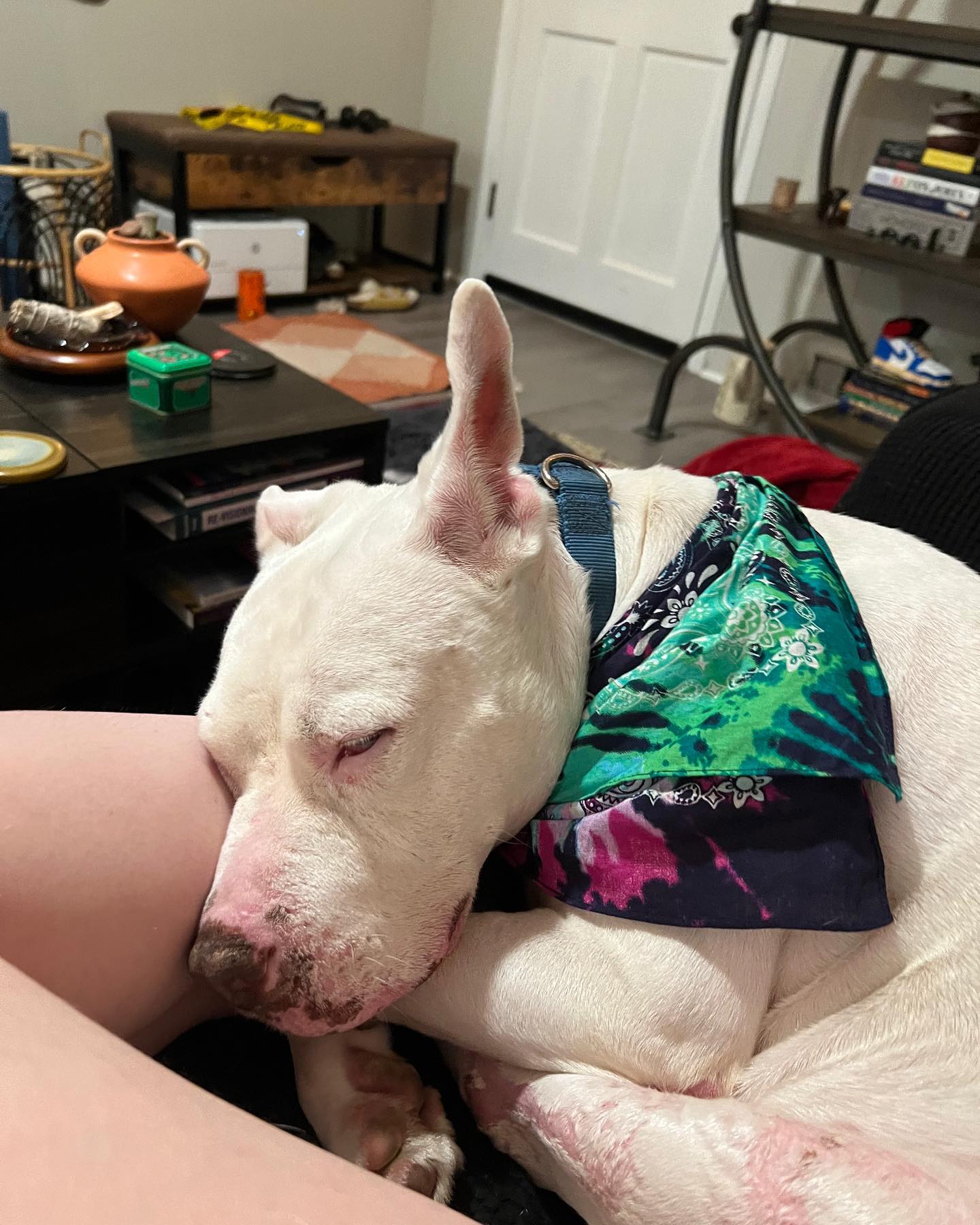 Chiquitita’s early life was harsh. She had been used as a bait dog in a cruel dogfighting ring before being rescued. Traumatized and in pain, she required time to recover both physically and emotionally, compounded by an arthritis diagnosis.