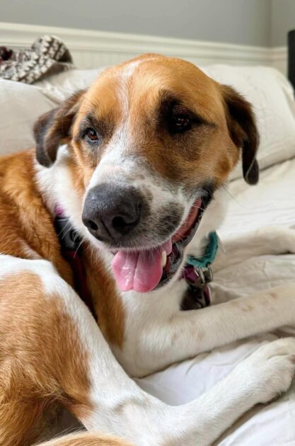 Though frightened at first, Ginger slowly adjusted to her foster home. Her eyes brightened, her tail began to wag, and she started to trust again.