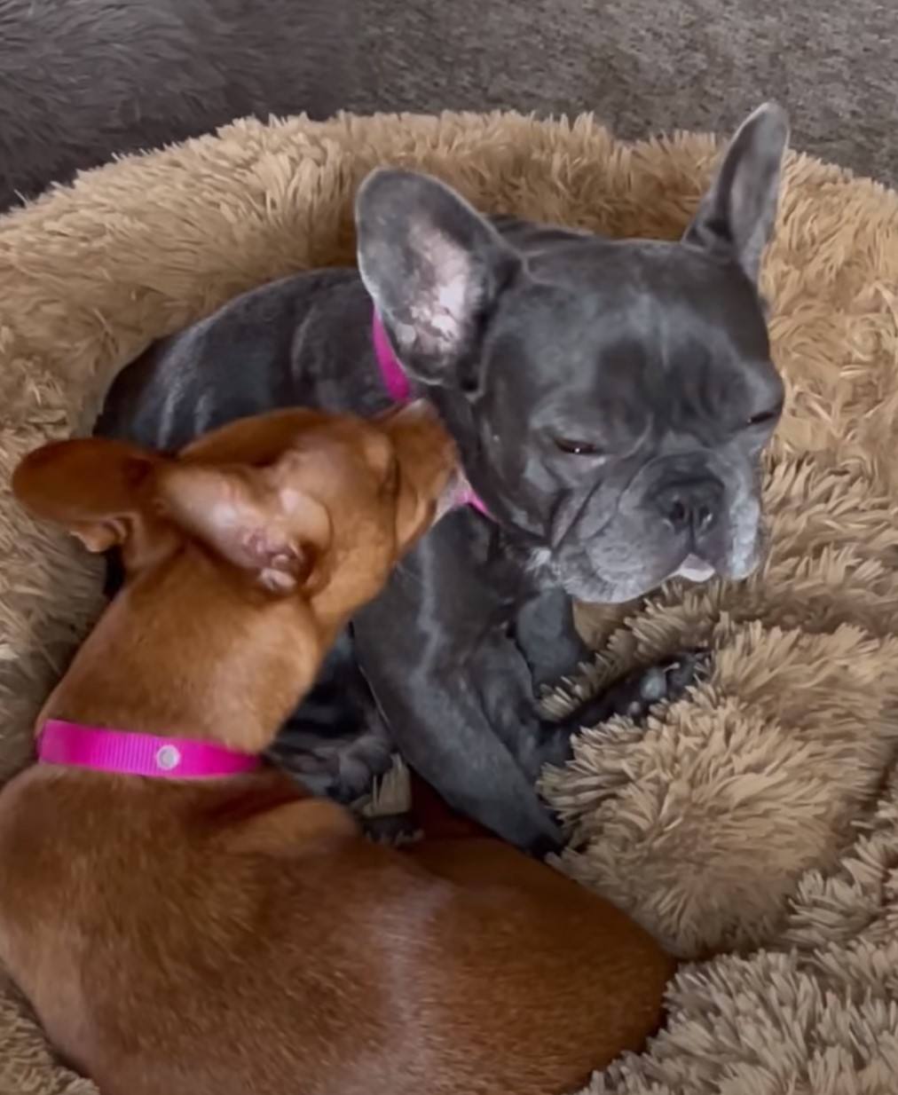“She was a puppy mill mama and everything was brand new to her. She would like to follow around my other dog to learn everything,” Tina explained.