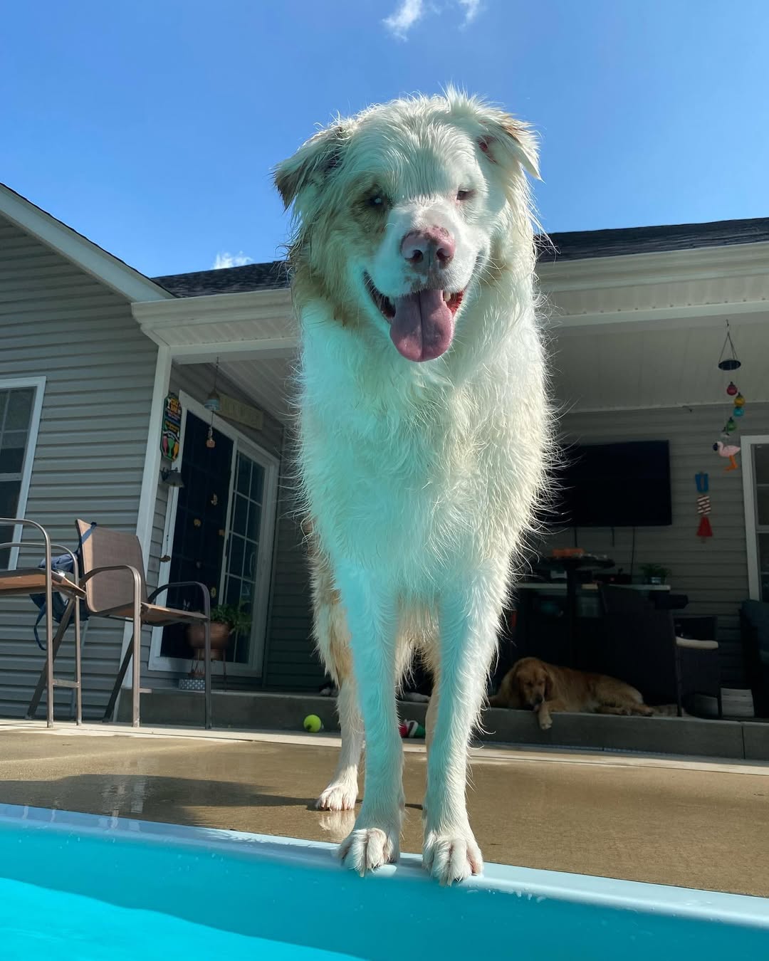 He’s a double merle rescue, and that genetic mix often means being born without sight or hearing. Sadly, that was Tamale’s reality.