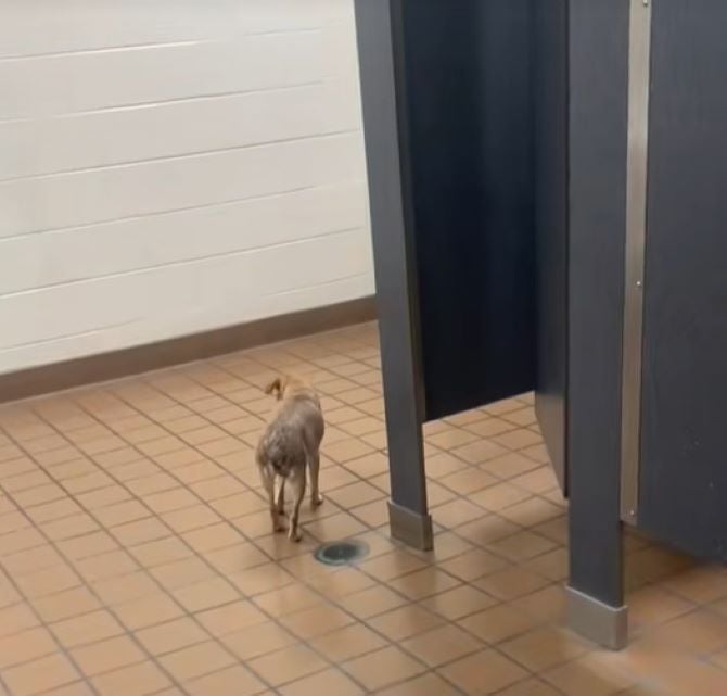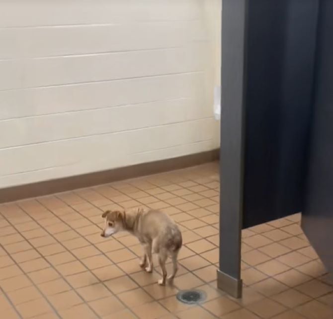After checking several rooms, she finally discovered Izzy somewhere completely unexpected: the men’s bathroom.