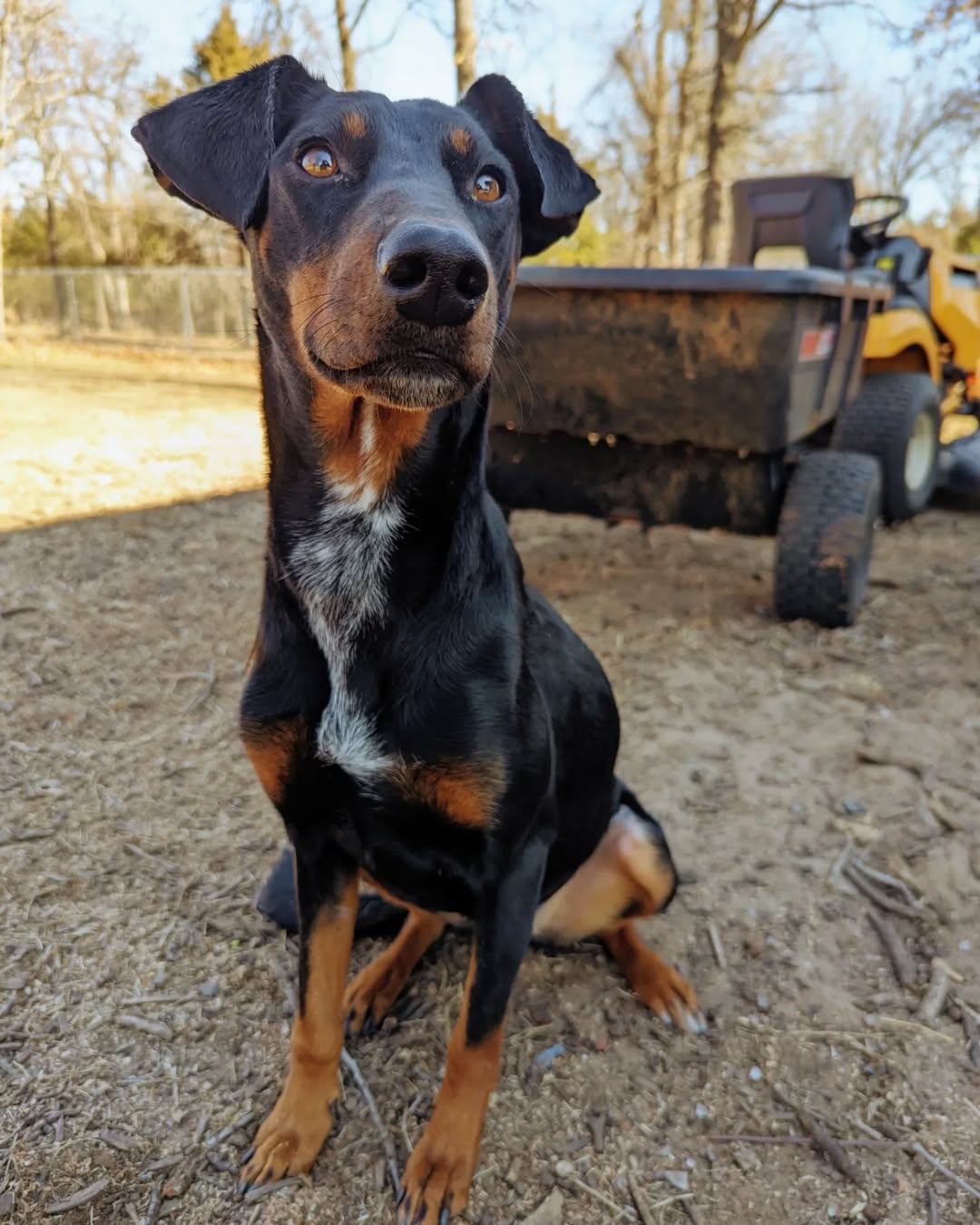 “She is a loyal and sweet mini Dobie who is being fostered here at camp with @dirtroad_dogs after she was found hit by a car and suffering with a broken foot,” DRD wrote on Instagram.