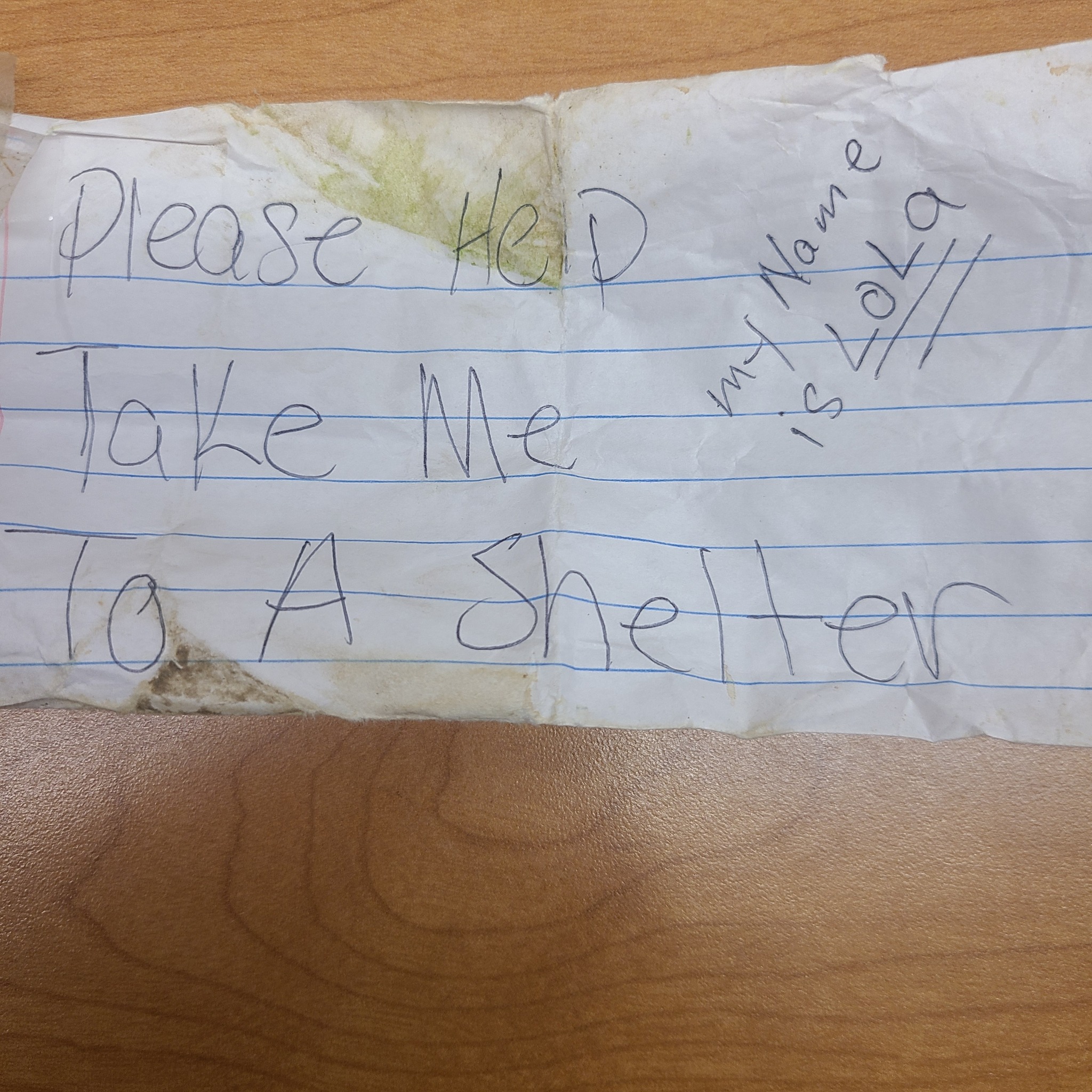 Lola literally packed her bags and turned herself in to the police. That is the smartest, saddest dog ever. The owner who wrote that note is a total monster. I hope the PPD throws the book at them!