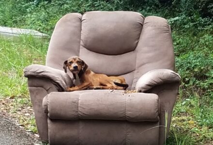 Mississippi Pup Weak From Hunger Refuses To Leave Recliner As If Loyalty Alone Could Bring His Family Back