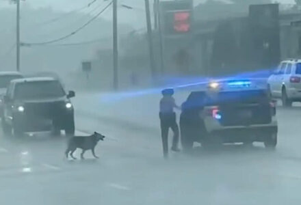 Police Officer Rescues Frightened Dog From Dangerous Highway In Tennessee Downpour
