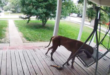 Ring Cam Catches 150-Pound Dog In Nebraska Breaking The Laws Of Physics For The Perfect Nap