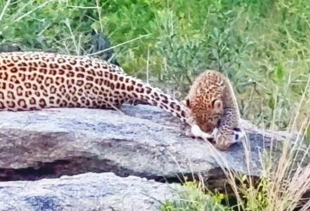 LEOPARD CUB’S TOTAL FAILURE: Watch The Aggressive Baby Tumble Off Rocks After Relentlessly Attacking Mom’s Tail!