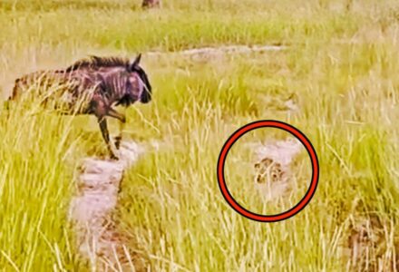 HERO MOM’S DEFEAT: Watch A Leopard Brutally Ambushes A Baby Wildebeest As The Herd Watches In STUNNED SILENCE!