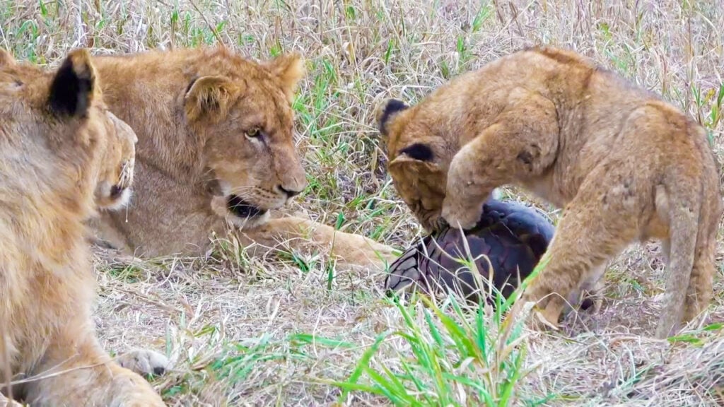 In this pride, there are numerous cubs and sub-adults. And, as any parent will testify, the kids don’t always want to sleep when mom and pop are taking a siesta.