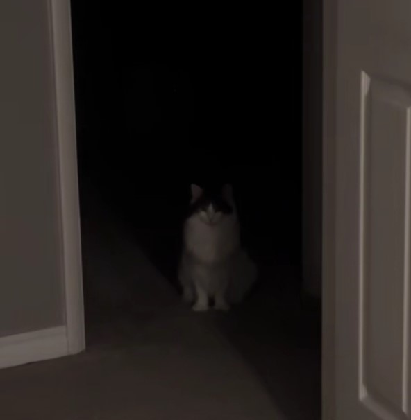 The woman, who goes by @lindzaceto on TikTok, began noticing odd behavior late at night. Her cat, Hermione, would silently enter the room where she and her dog, Wilson, were sleeping.