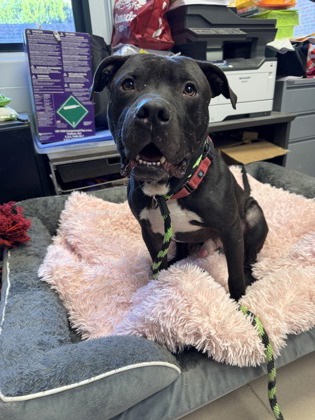 “It was no surprise that his family saw what we saw right away!” Lindsey said. “His family was looking for a big, [lovable] pittie, and their connection was almost instant.”