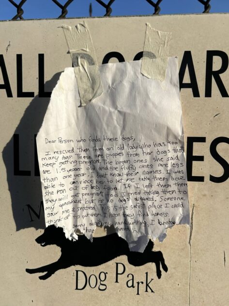 Six young dogs were roaming freely, with no owner in sight and no one stepping forward to claim them. The only clue was a note left behind, offering insight into how they ended up there.
