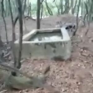 Moments later, we hear a loud pop, and the snow next to the man puffs up, presumably as the bullet goes into the ground next to the man.
