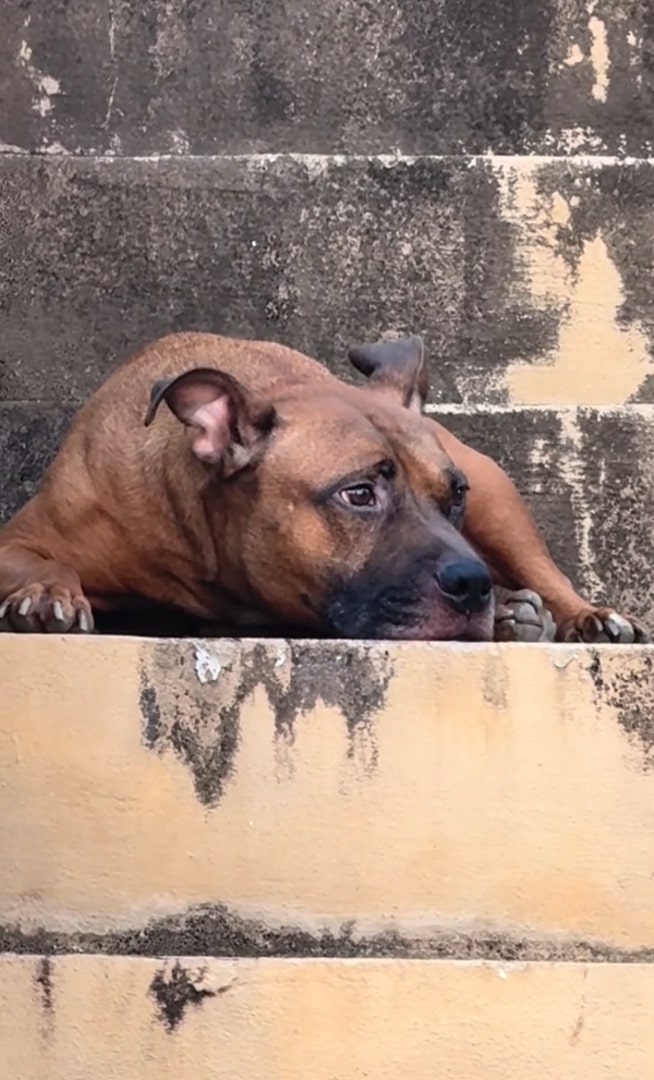 Amanda Knight was walking her dog, Thor, when she spotted Houdini sitting alone on the front steps of a vacant home. Initially, Amanda assumed the dog was simply waiting for his owner. However, the truth was much more heartbreaking.