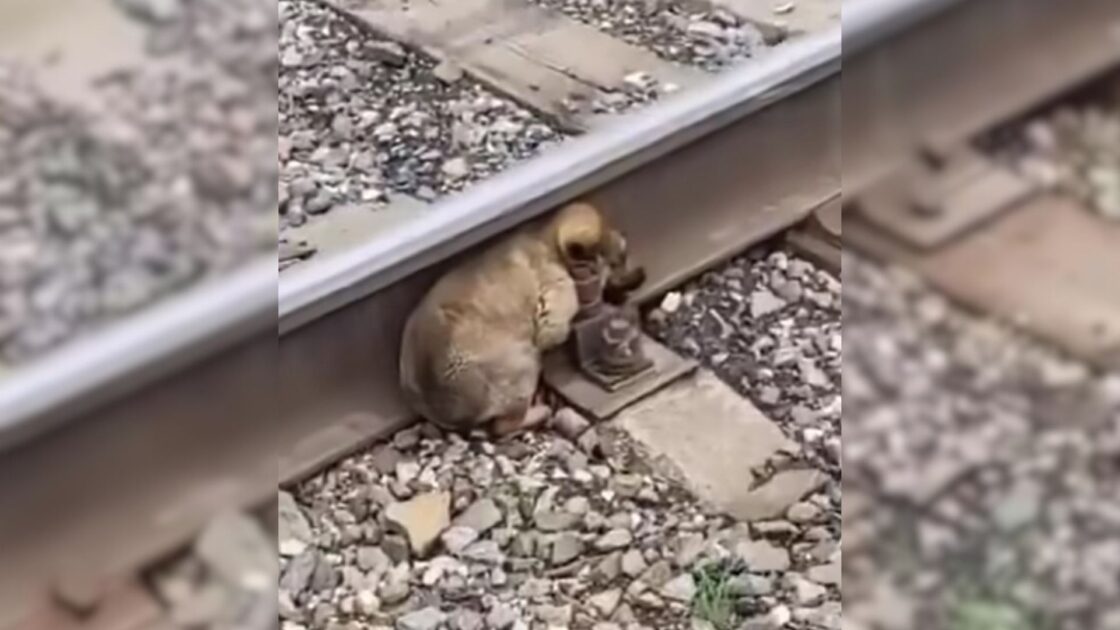 When these kind-hearted people were passing by the railway, they saw something tiny and curled up beneath the rail. As soon as they got closer, their hearts broke when they realized that a poor little puppy was stuck there.