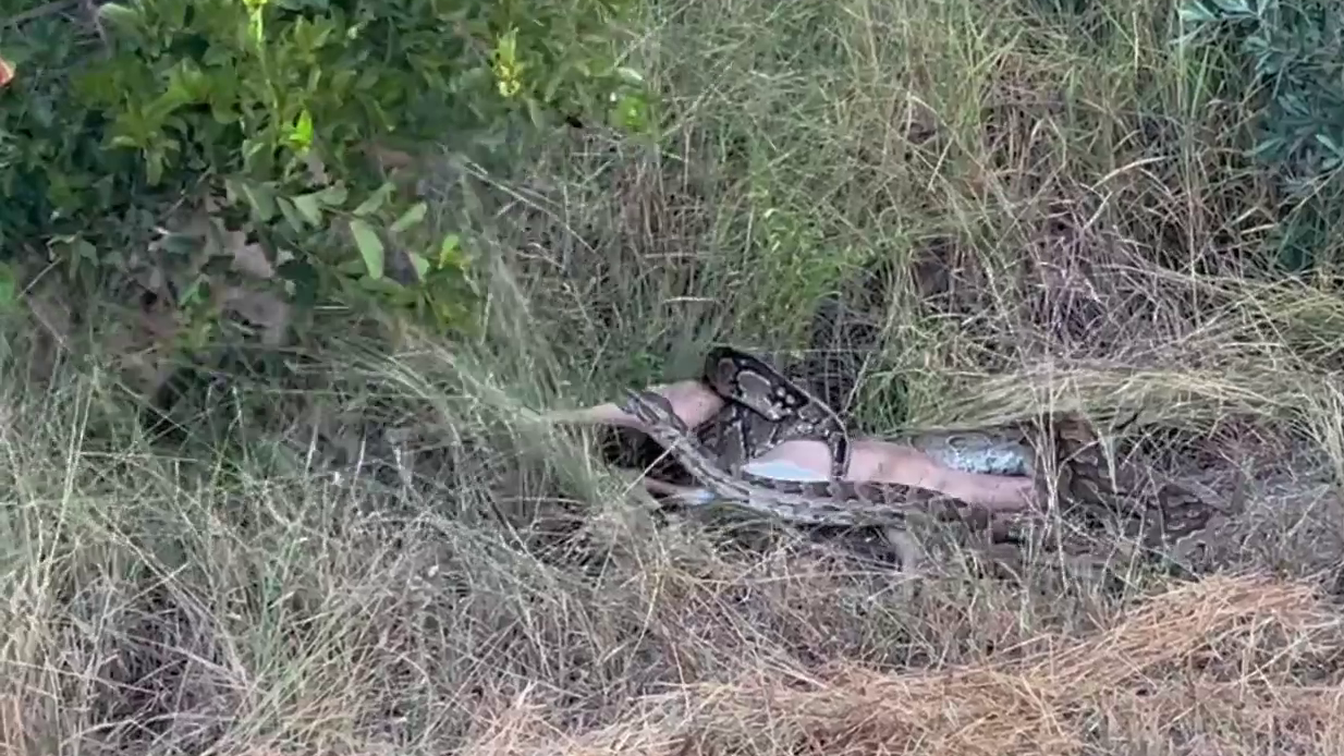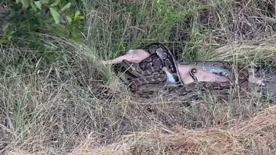 The python may well have been preparing to swallow the impala, a process that always begins with the head first.