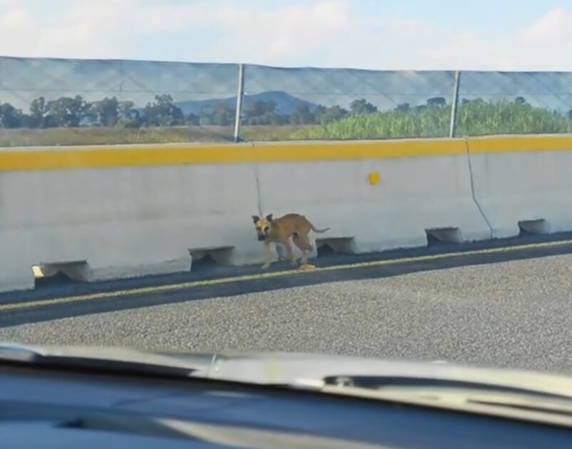 As they slowed down, they realized it was a small, frightened dog standing dangerously close to traffic. They stopped the car.