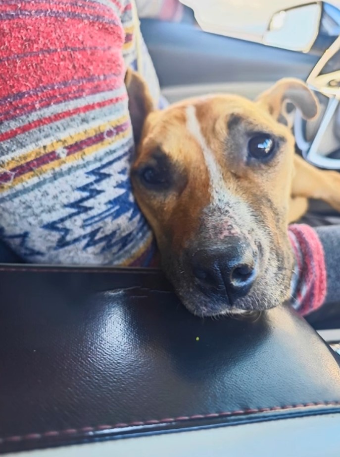 As they drove away, the couple saw the little dog, later named Manzana, slowly relax. She nestled into their arms and fell asleep, as if she finally knew she was safe.