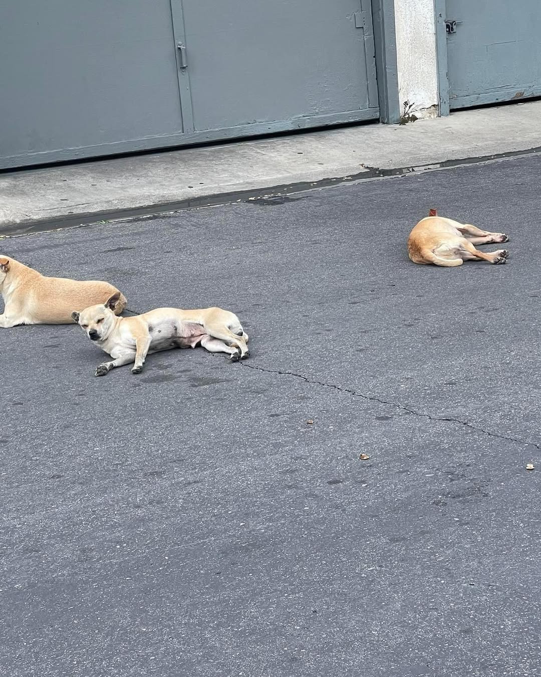 Despite their fear, the dogs stayed in the same spot for days. Touched by their plight, the community left food and water nearby in the hopes that they would find the strength to eat.