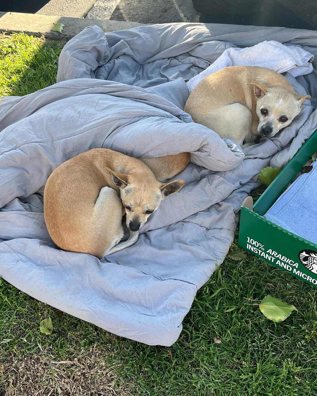 “There they were, shivering, huddled together on the blanket and box they were left with. Neighbors left food for them. They stayed in the exact spot for days,” Suzette shared on Instagram.